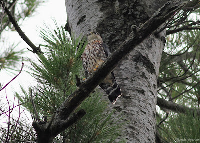 I arrived at the cottage and Ann shortly thereafter (her blog will amaze you with her Osprey adventures), immediately heading for the dock to relax and cool off from the humidity. But we didn't stay put for very long as my resident Merlin started to act up in the noise department, prompting Ann to run around barefoot (!) on the back road for that perfect shot...In the end we determined that there were three Merlins, here's a few photos of them: