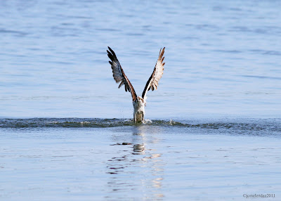 Suddenly a I heard a huge "kerplunk" in the water and quickly looked over to see this, an adult Osprey! Not the best picture, but it succeeded in catching a fish: